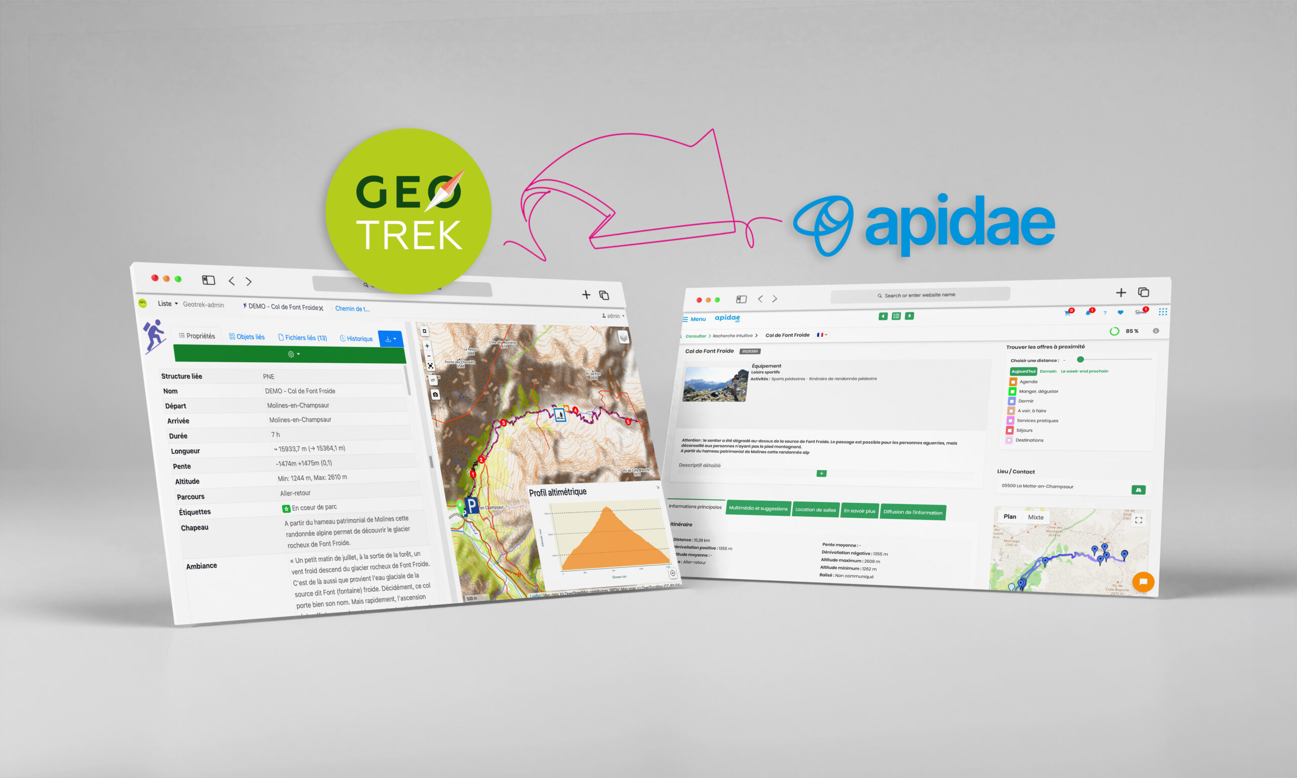 Oui, c’est même une partie importante de notre activité e-tourisme. Les parcs utilisent Geotrek pour gérer leurs itinéraires de randonnée, et Apidae pour les diffuser sur les sites web et applications mobiles des destinations.